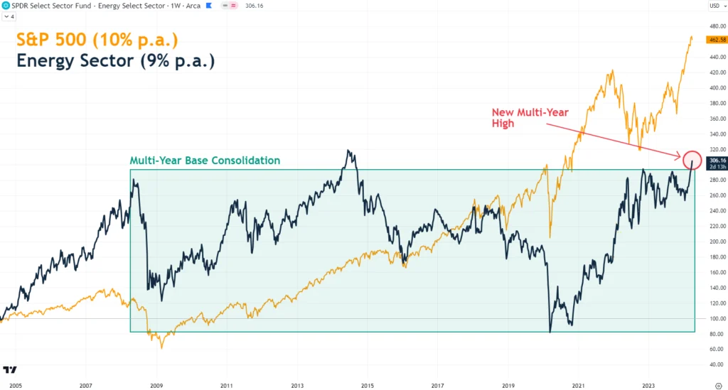 The energy sector is at a potentially powerful turning point, having just reached a new multi-year high - new highs are outright bullish.