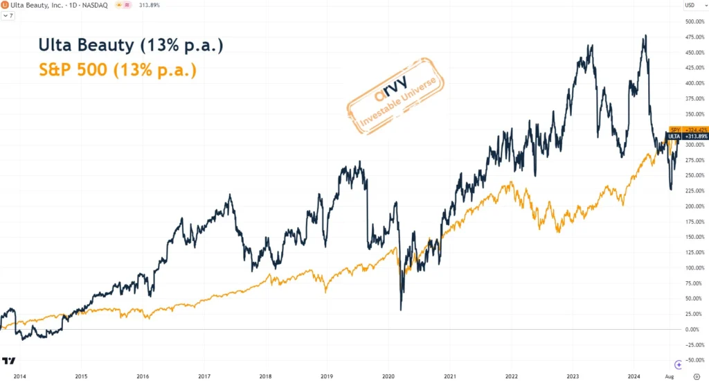 The market for beauty retailers is highly competitive, making the business less stable, which is reflected in the high volatility of Ulta Beauty shares.