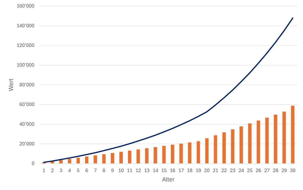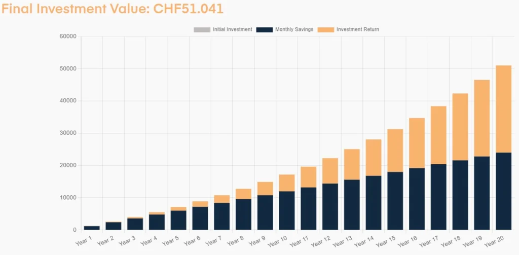 Consider starting an investment plan when your child is born. By contributing CHF 100 per month into an investment account with an average annual return of 7%, you can create a powerful financial engine. Over 20 years, your contributions would total CHF 24,000, but thanks to compound interest, the account could grow to approximately CHF 52,000. This isn't just money—it's opportunity.