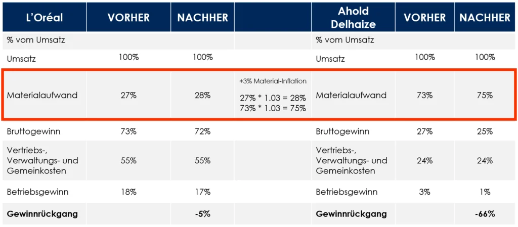 Chart 3: Example; Impact of input cost inflation on L’Oréal and Ahold Delhaize
