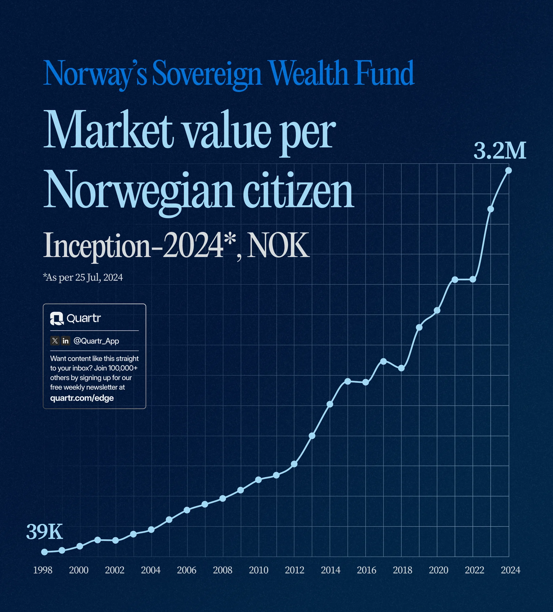 arvy's teaser: Norway turned oil riches into the world’s largest sovereign wealth fund, now worth $1.8 trillion. With stakes in 9,000 companies, it’s reshaping global finance - proving that disciplined investing and long-term vision create unstoppable wealth. And you can replicate it!