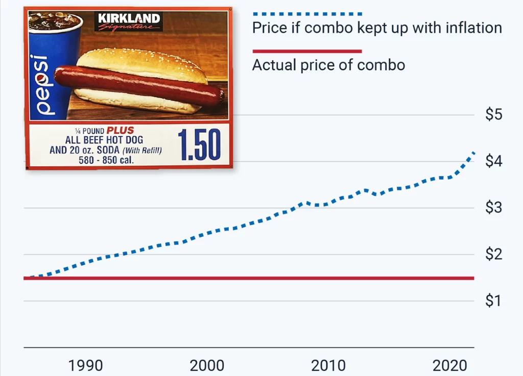 Chart 1: Costco’s inflation hedge: $1.50 hot dog combo, same price since 1985