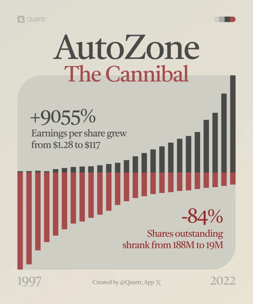 A prime example of a cannibal is AutoZone. The company has been buying back its own stock on a massive scale over a very long period.