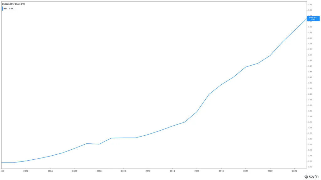 Chart 3: RELX's annual dividend has increased over the past 25 years