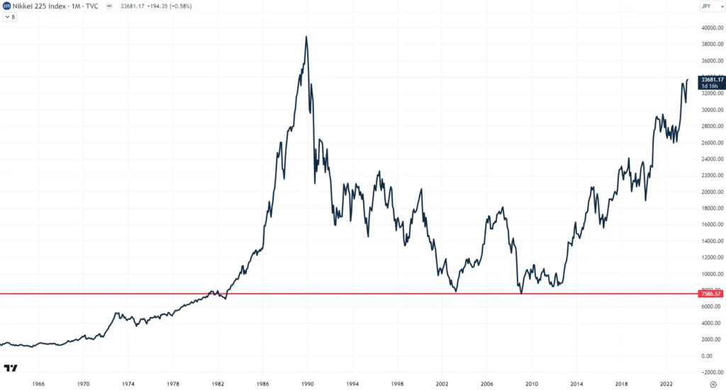 8. At the low in 2009, Japanese stocks were back to where they were in 1980.