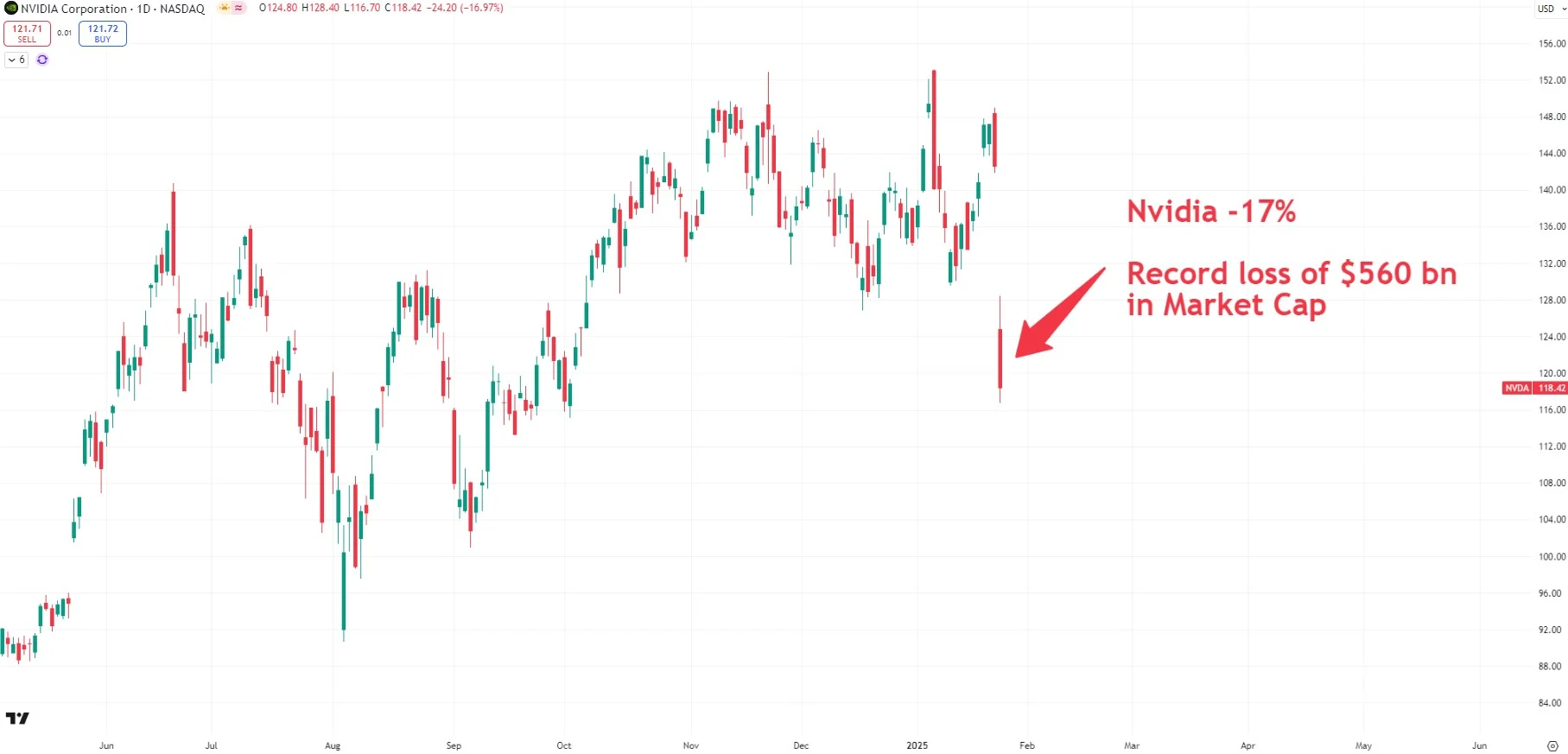 Chart 3: Nvidia’s $560bn DeepSeek rout is largest in market history