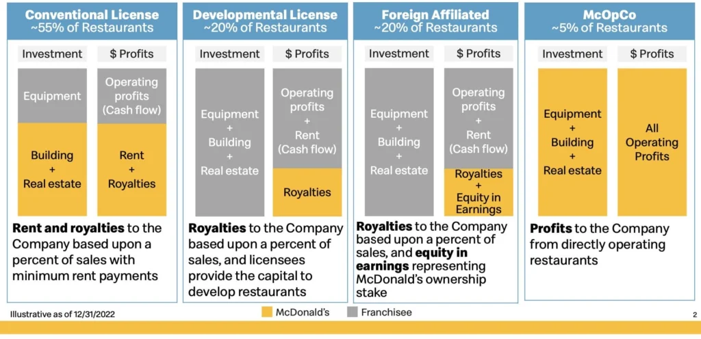 I touched on this in the previous section. It is mainly a franchise company. More specifically, McDonald's is a real estate company, as it owns around 70% of the restaurant buildings and 45% of the associated land, which it leases to its franchisees.
