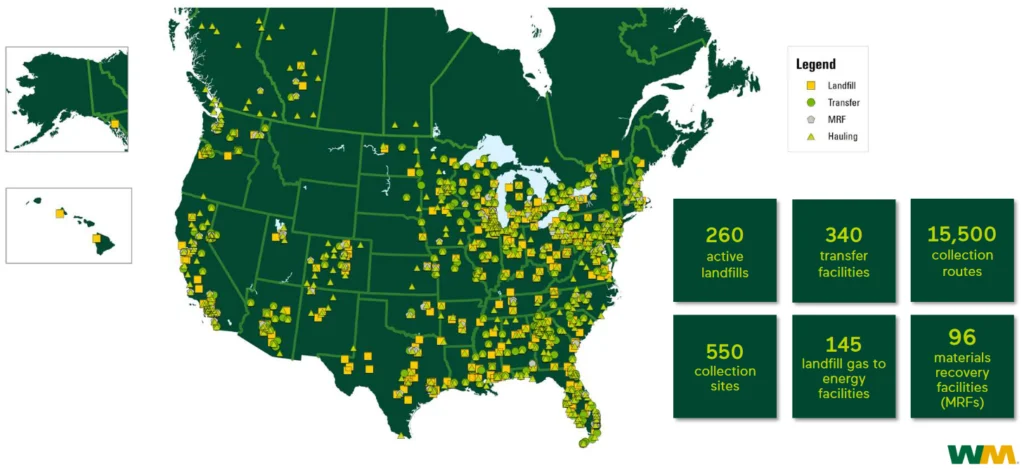 WM commands a market share of 24%, followed by Republic Services (15%) and Waste Connections (8%).