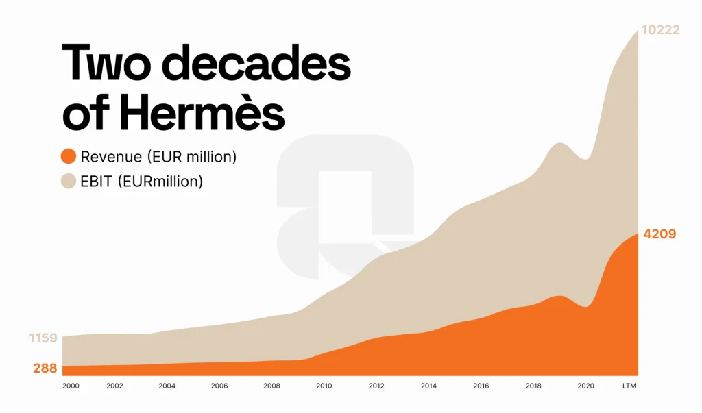 Chart 1: Two decades of Hermès, Revenue and EBIT growth
