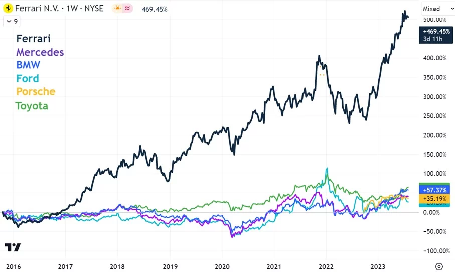 Chart 4: Ferrari vs Other Automakers since IPO (ex-Tesla)