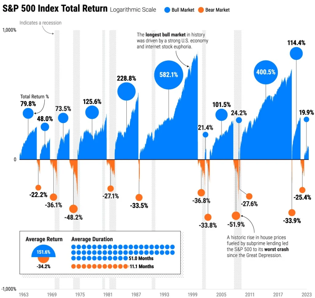 Chart 1: Börsenzyklen: In Bullenmärkten gewinnt man mehr, als man in Bärenmärkten verliert