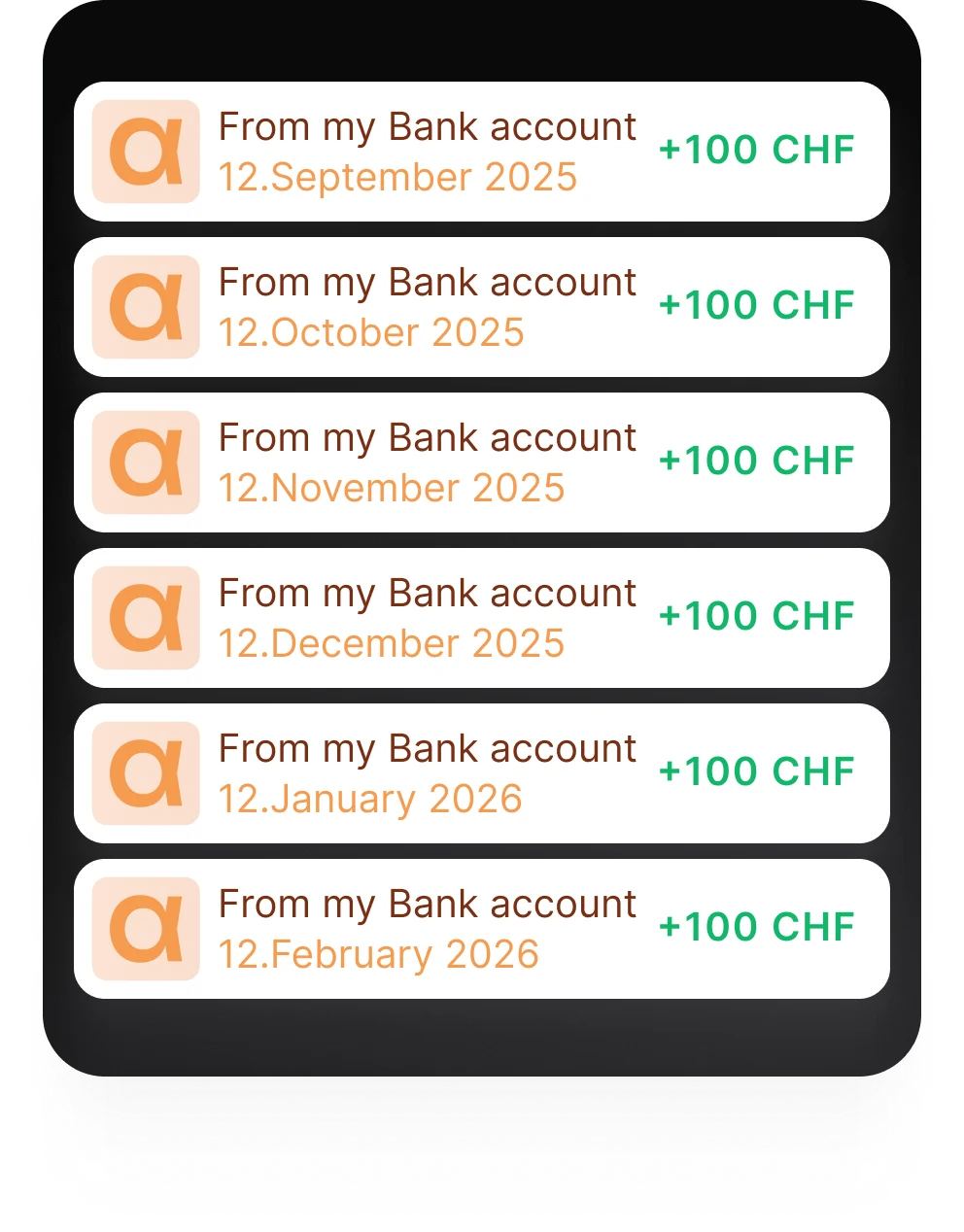 You can start with min CHF 100. After that, you can top up flexibly from min CHF 50.