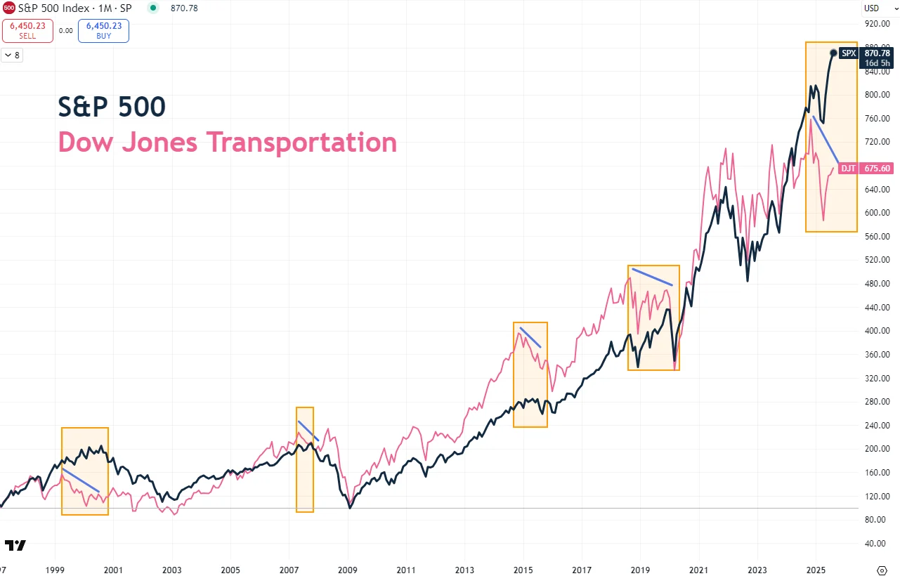 A great historic example of a hefty divergence is playing out right now – straight from the classic Dow Theory, a 100+ year-old framework used by market veterans to spot major trend shifts before they make headlines.