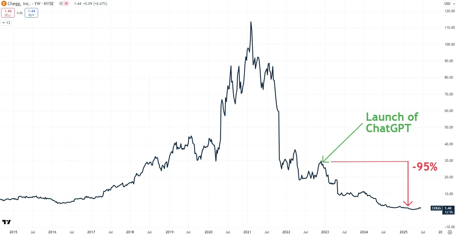 Chart 1: Chegg’s collapse after the launch of ChatGPT